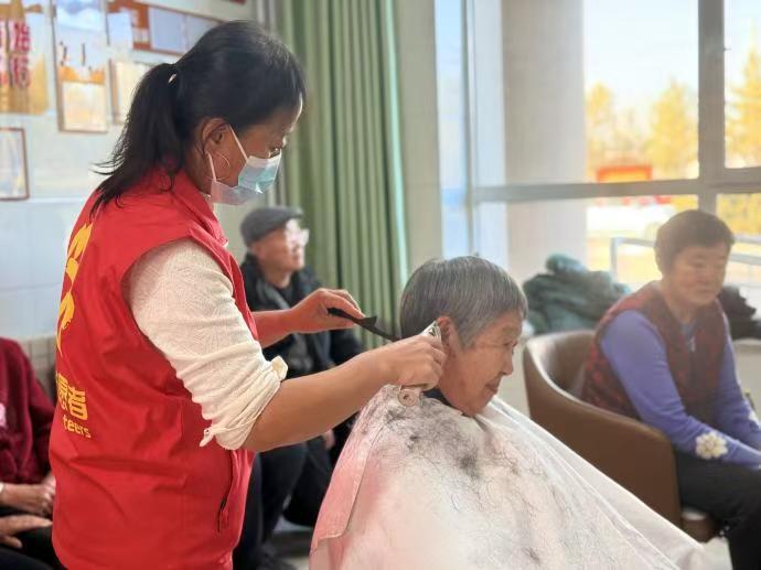 布拉格嘎查则以传统节日为契机,开展“慰问+志愿服务”活动:志愿者上门为老人送上节日祝福,同步协助办理养老保险认证、普及防火防跌知识,既解决实际困难,又凝聚人心、促进乡风文明。义剪服务是各嘎查村实践站的常态化项目,采取“定点服务+上门关爱”模式:邀请专业理发师进村“坐诊”,在实践站设置临时剪发点;发动有从业经验的志愿者参与,为行动不便、卧床不起的高龄老人和特殊群体提供“移动理发”服务,用耐心与爱心让老人们足不出户就能享受贴心照料。