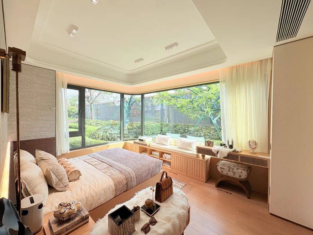 比如,110㎡的户型,原本传统户型中,卧室的飘窗会占据大约1-2㎡的空间,而中建岭南序的零飘窗设计,把这部分空间纳入卧室,让卧室的使用面积增加了1-2㎡,原本只能放下一张床和一个衣柜的卧室,现在可以额外摆放一个梳妆台、一张书桌,或者打造一个小型的休闲角落,让卧室的功能更加多样化;客厅的零飘窗设计,让客厅的采光面变得更大,阳光能够直接照射到客厅的每一个角落,让客厅变得更加明亮通透,同时也增加了客厅的实际使用空间,摆放沙发、茶几、电视柜之后,还有足够的空间打造一个小型的亲子互动区或休闲区。