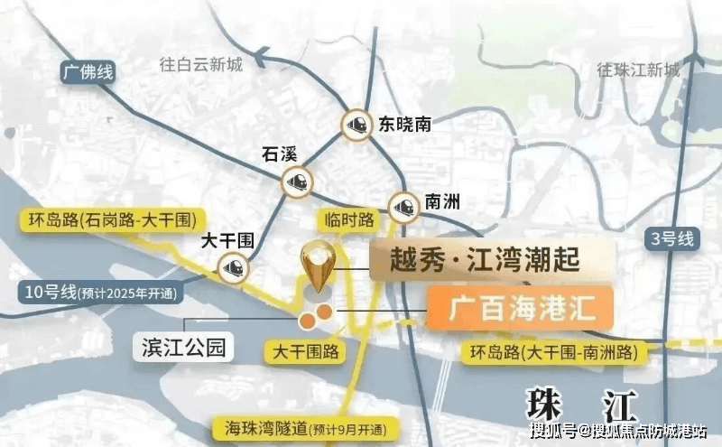 自驾出行方面,项目周边路网完善,通过已通车的海珠湾隧道,15分钟即可抵达广州南站,根据广州市海珠区人民政府官方公告,海珠湾隧道于2025年11月12日正式通车试运营,该隧道是广州首条超大直径盾构隧道,被誉为“广州第一盾”,全长4.36公里,双向6车道,设计时速60公里,通车后实现广州中心城区与广州南站15分钟互达,显著提升广州南站的集疏运效率。同时,环岛路临时道路已按计划贯通,进一步完善了区域交通路网,从项目出发,可快速抵达东晓南立交、广州环城高速等交通枢纽,直达广州各个区域,自驾出行畅通无阻。